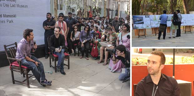 Sachin Tendulkar addressing audiences during his visit to the Lab site at the Museum (left), The Kala Nagar Junction Competition proposals on display at the Museum Plaza (above), and David Van Der Leer (below) |