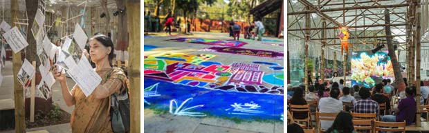 The Lab week began with rangoli art, gajra baagvani (floral decorations) and kandil (candle) making sessions where visitors were invited to help decorate the Lab site in the Museum Plaza. Public participation in local craft activities transformed the Lab into a community centre. On weekends, visitors were invited to participate in surveys documenting people’s perspectives about public spaces, privacy and the urbanization of Mumbai. In a unique survey, sensory information was recorded by machines connected to participants who were led on a tour of Byculla in order to understand their physical reactions to the city. A diverse set of programmes were designed to engage and encourage participants to explore and learn about their urban landscape and social fabric. A film series which included short films and Bollywood movies explored issues about Mumbai’s changing cultural landscape. A special women’s only event focused on issues relating to gender and public space. A series of 10 panel discussions, called Meet in the Middle, brought urban planners, grassroots social workers, government officials and industry experts to discuss infrastructure, transportation, housing, urban planning and green spaces in Mumbai. The Lab also explored Mumbai through culinary tours and conversations on the diversity of food habits - over a good meal! As part of the Lab, the Museum conceptualised and conducted special programmes for families and younger audiences, which are highlighted below. |