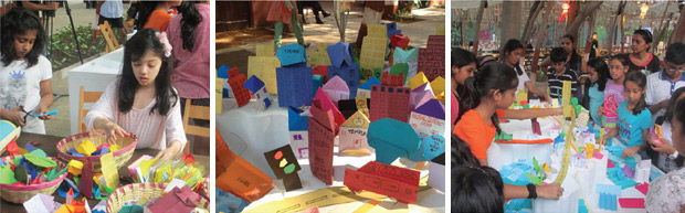 As part of the BMW Guggenheim Lab, the Museum conceptualized a collaborative origami art project where children aged 10 and above worked together to create an ideal Mumbai. Working with professional origami artist, Himanshu Agrawal, the Museum staff organized a series of origami workshops at sites across the city, each of which focused on a particular aspect of urban planning – transport, flora and fauna, housing and infrastructure. Participants from each workshop were invited back to the Lab at the Museum to collectively assemble an urban landscape that reflected their vision of Mumbai’s future landscape. The origami city art work will remain temporarily on display at the Museum Plaza.